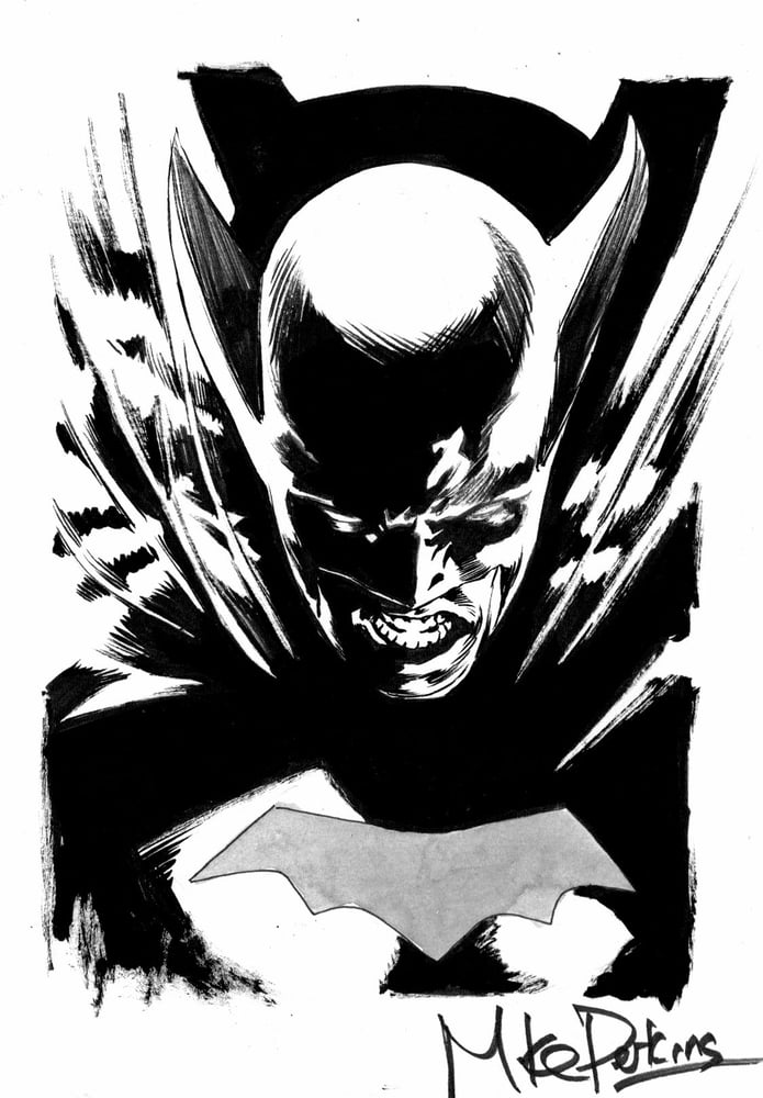 Hardback collection of The Bat-Man: First Knight series by Dan Jurgens, Mike Perkins and Mike Spicer. Signed and featuring an A5 original, inked Batman sketch by artist Mike Perkins. ONE OF A KIND.