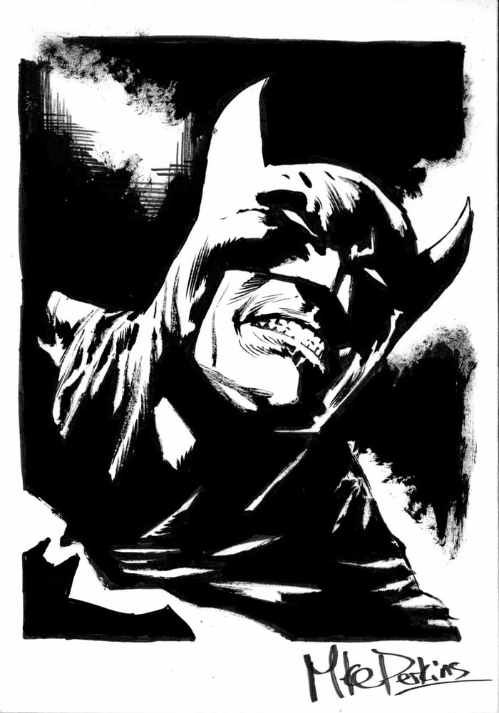 Hardback collection of The Bat-Man: First Knight series by Dan Jurgens, Mike Perkins and Mike Spicer. Signed and featuring an A5 original, inked Batman sketch by artist Mike Perkins. ONE OF A KIND.