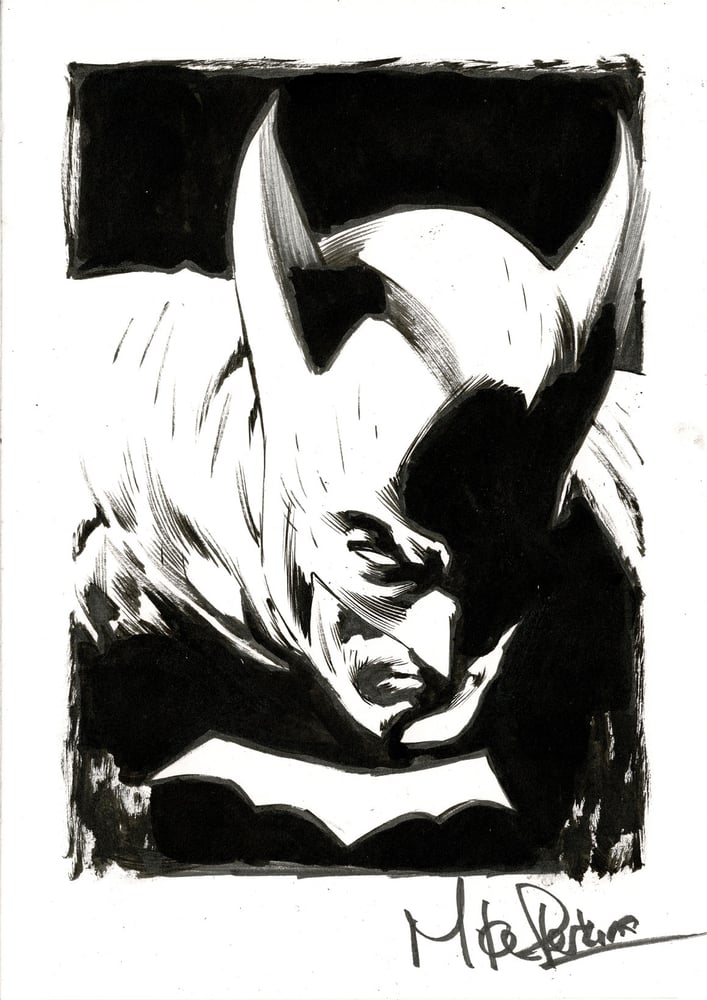 Hardback collection of The Bat-Man: First Knight series by Dan Jurgens, Mike Perkins and Mike Spicer. Signed and featuring an A5 original, inked Batman sketch by artist Mike Perkins. ONE OF A KIND.